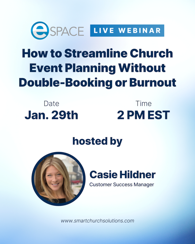Join us for a practical, fast-paced webinar where Casie, our Customer Success Manager, will walk you through real strategies churches are using to streamline their event planning process and how your team can do the same.